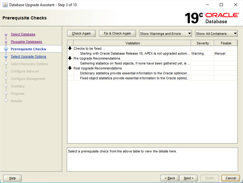 7. Run the Preupgrade utility for all cdb and pdbs in one command. PDB must be in open state.