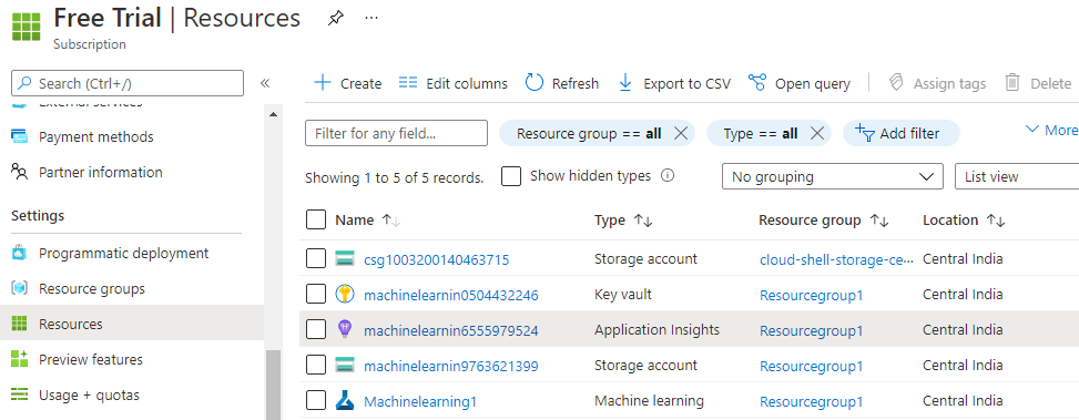 5. You will check all the resources present in your subscriptions. You can also delete from here by selecting the resources and press delete button.