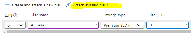 4. Attach Disk: If you want to attach any existing disk which is present by using ATTACH EXISTING DISKS.