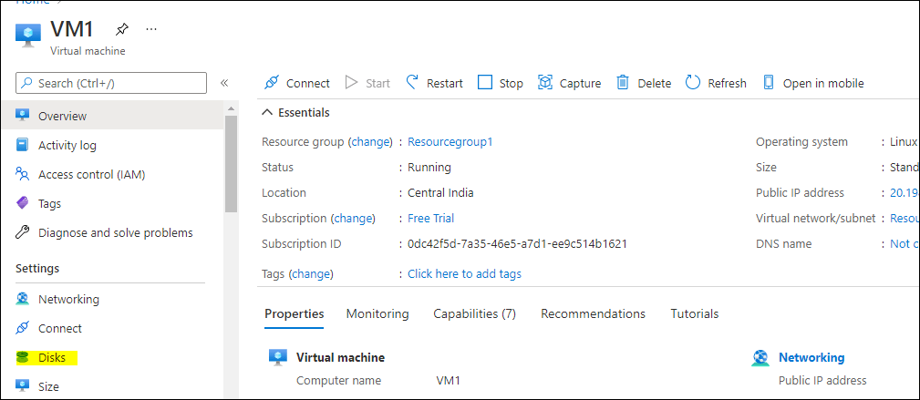 - Login to Azure portal and go to the Virtual Machine VM section.