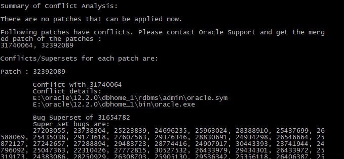 C:\patch_25463157>opatch prereq CheckConflictAgainstOHWithDetail -ph 25463157