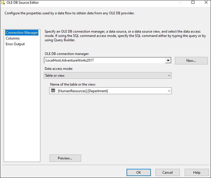 3. Double click on OLE DB Source and configure it with new connection.