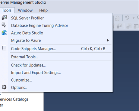 2. Connect the Database and go to the TOOLS –> Select Options.