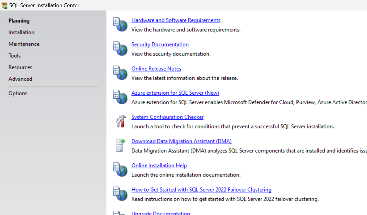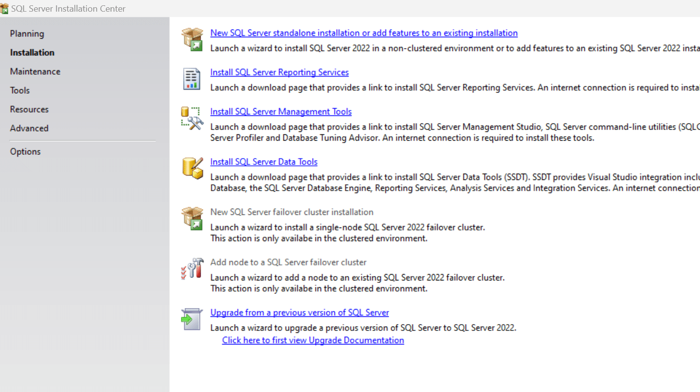 Right panel 3 option: Install SQL Server Managment Tools