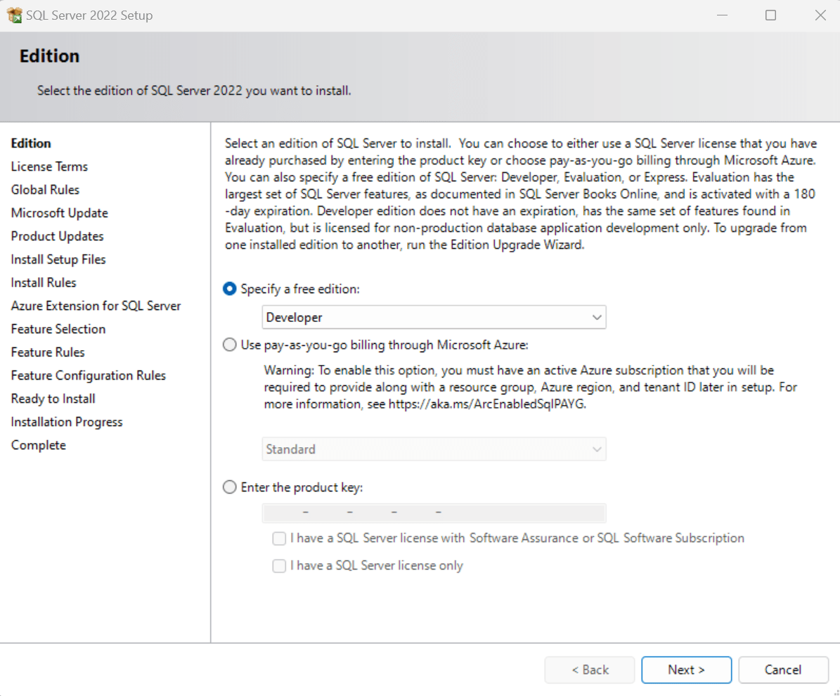 Steps to install SQL Server 2022 Developer Edition