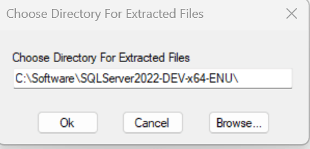 9. Double click on SQLServer2022 application and it will open a dialoug box for extract the software as follows: