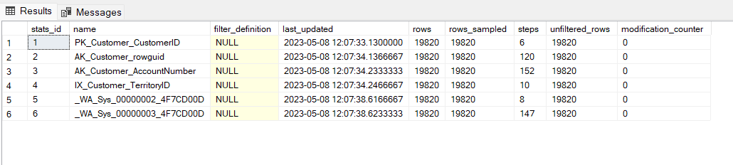 WHERE stat.object_id = OBJECT_ID('[Sales].[Customer]');